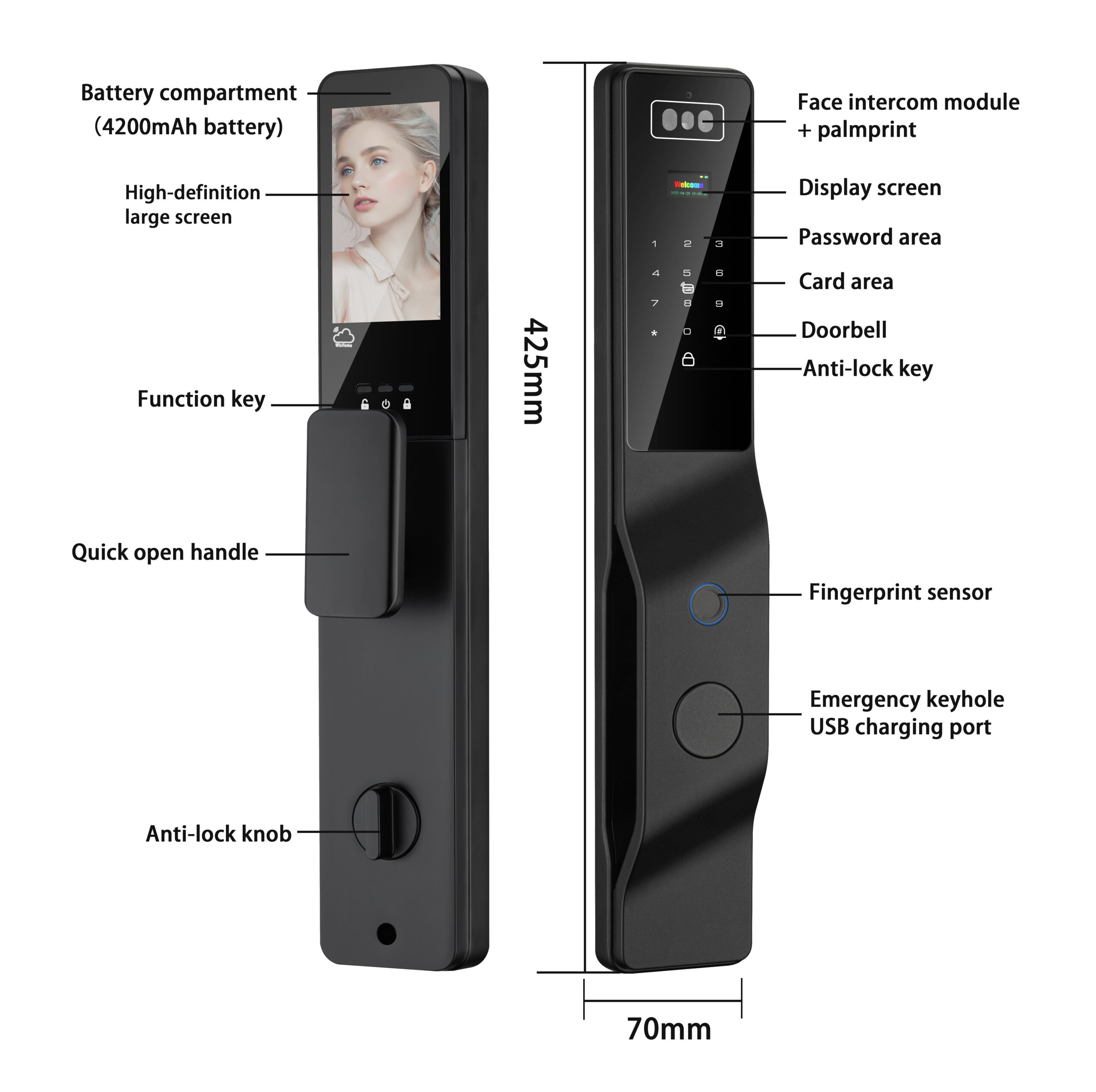 • 🖥️ شاشة داخلية HD كبيرة لرؤية الزوار بوضوح تام